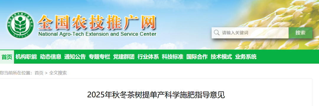 9月16日,全国农技推广中心发布2025年秋冬茶树提单产科学施肥指导意见,以指导生产者优化茶园养分管理,促进茶产业提质增效。全文如下: