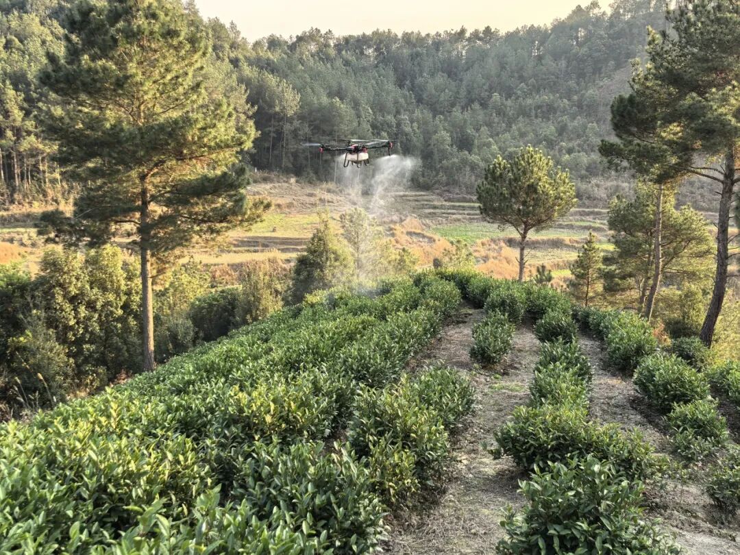 为增强茶树储藏养分,提高春茶产量和品质,可在茶树地上部休眠期间(12月至翌年1月)喷施氨基酸叶面肥2~4次,每次间隔两周,每次喷施氨基酸叶面肥(氨基酸含量≥100 g/L)用量0.5~1 升 /亩,按产品推荐浓度兑水稀释。无人机喷施时的飞行高度宜为1.5~2 m。