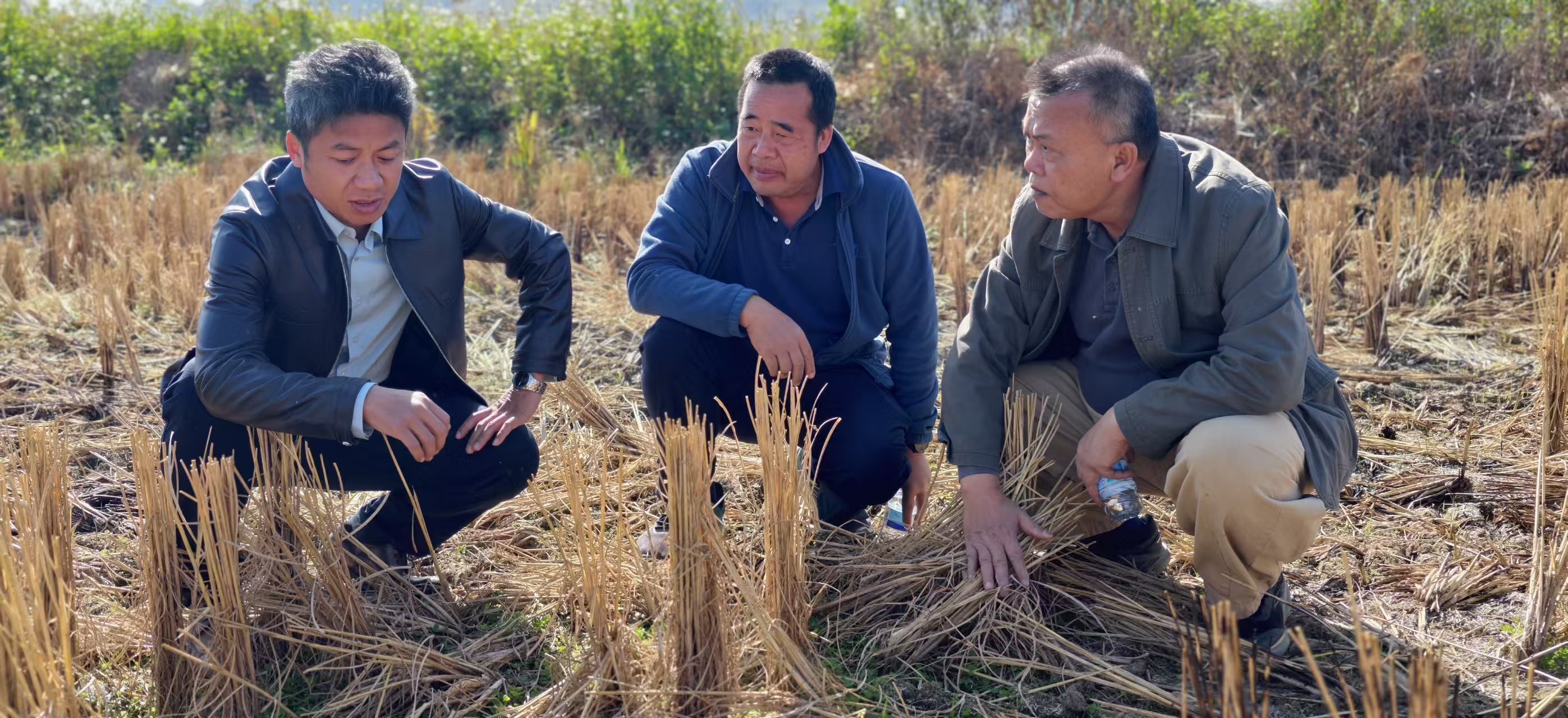 指导组查看稻底套播紫云英长势情况