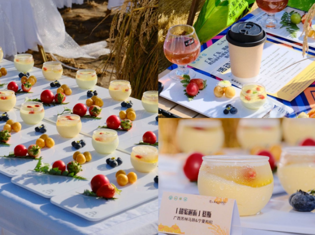 在联名美食展示环节,广西元素成为亮点之一。“桂宁香韵”将广西上思香糯与宁夏见稻村咖啡巧妙融合,探索大米产业新可能;“甜蜜邂逅”以广西芳林马蹄搭配宁夏枸杞慕斯,演绎出独特的东西风味,展现出广西农产品在跨界融合中的潜力。