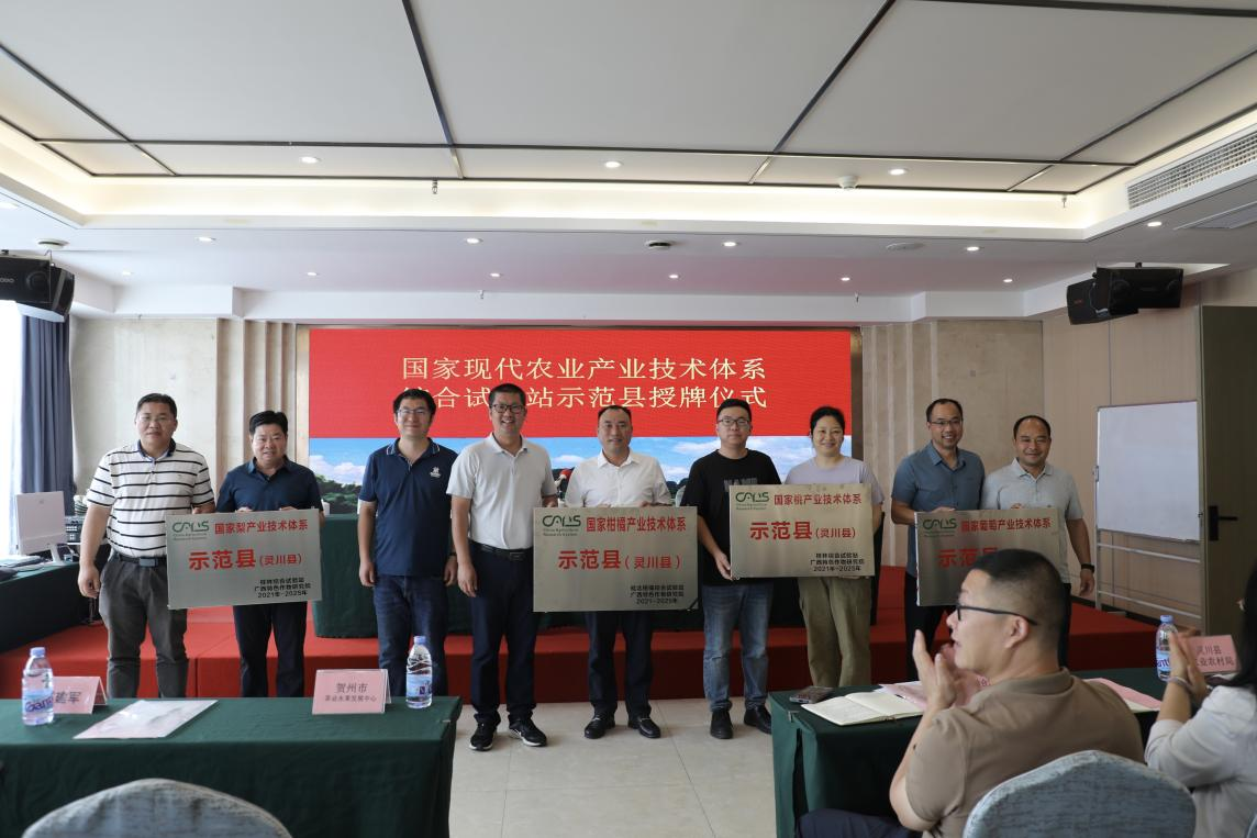 会上,灵川县农业农村局局长陶庆刚表示,灵川县秉持“以柑桔为主导,特色水果区域布局”发展思路,全面推进优果工程,以科技赋能水果产业。广西特色作物研究院副院长刘升球提出,应聚焦品种培优与品质提升,推动产业向质量优势转变。随后,国家现代农业产业技术体系柑橘、桃、梨、葡萄4个国家综合试验站向灵川县授予国家现代农业产业技术体系示范县牌匾,灵川将依托国家综合试验站技术,深化柑橘、桃、梨、葡萄新品种新技术示范。