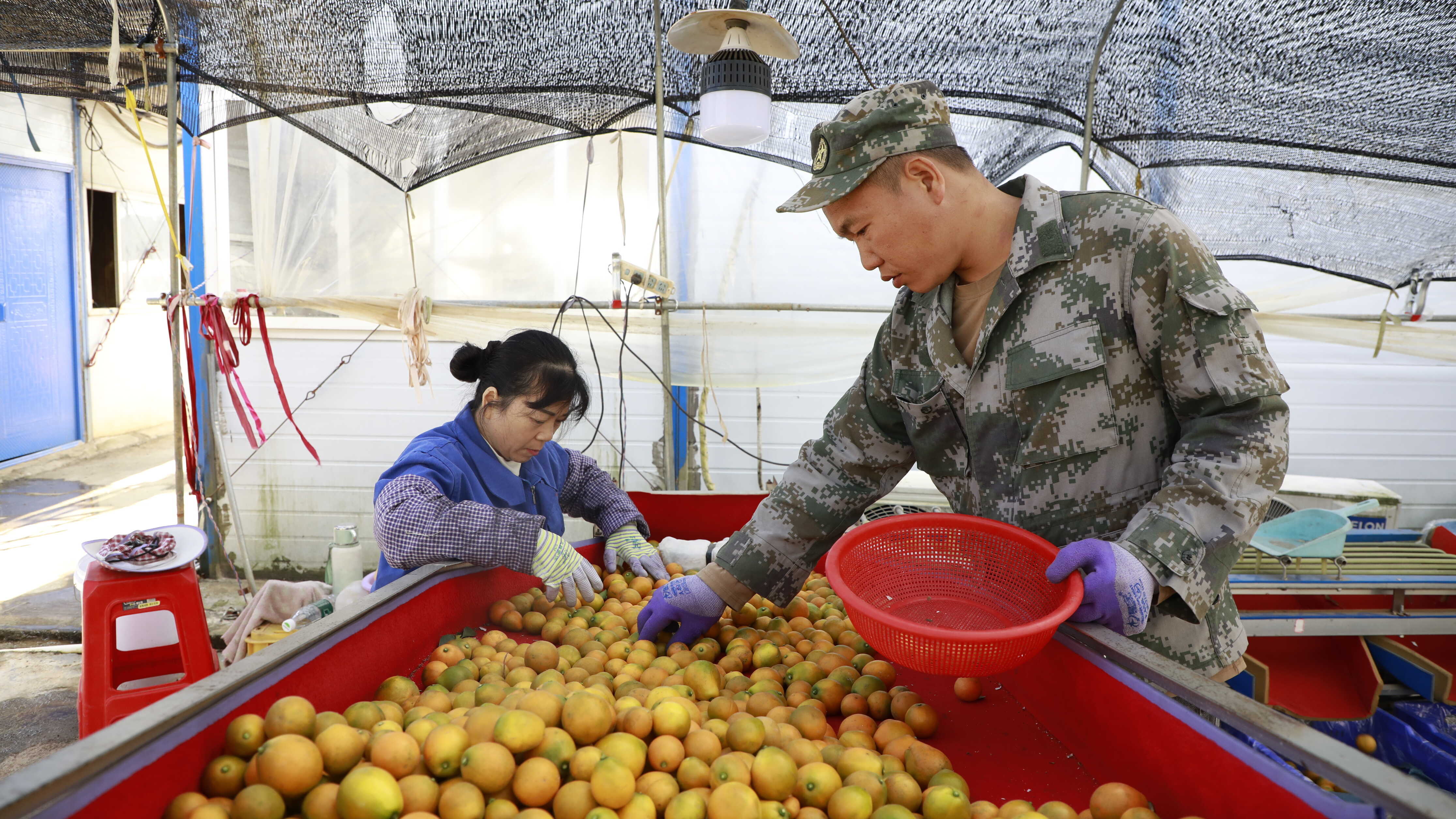 石龙镇脆蜜金桔规模化种植,不仅打响特色种植品牌,更带动当地群众就近就业。基地采收期日均需20余名工人,采收高峰期用工量近百人,为周边村民提供稳定增收渠道。“在这里做工两年多,每月能挣3000至4000元,离家近能照顾老人和孩子,兼顾家事与增收,很踏实。”工人覃家明一边筛选果实一边说道。