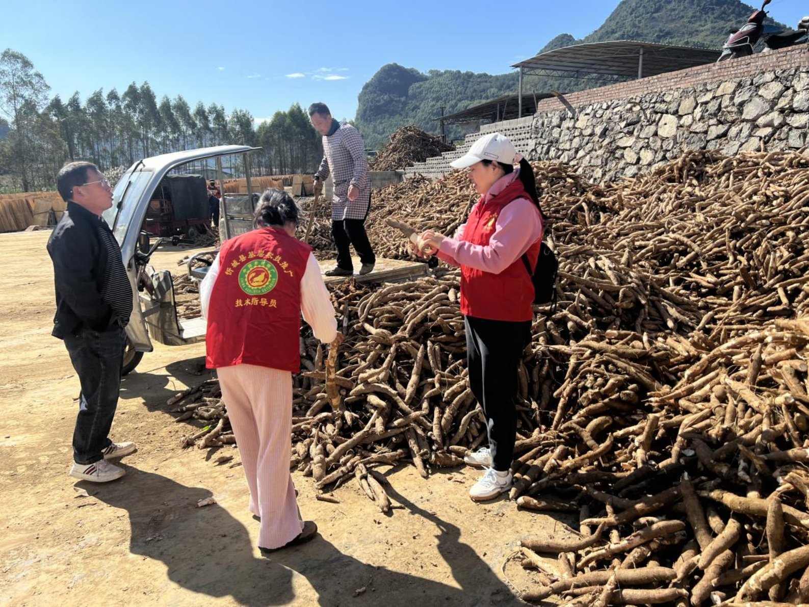 忻城县欧洞乡收购点现场忻城县农业种植技术推广中心技术人员查看木薯品质