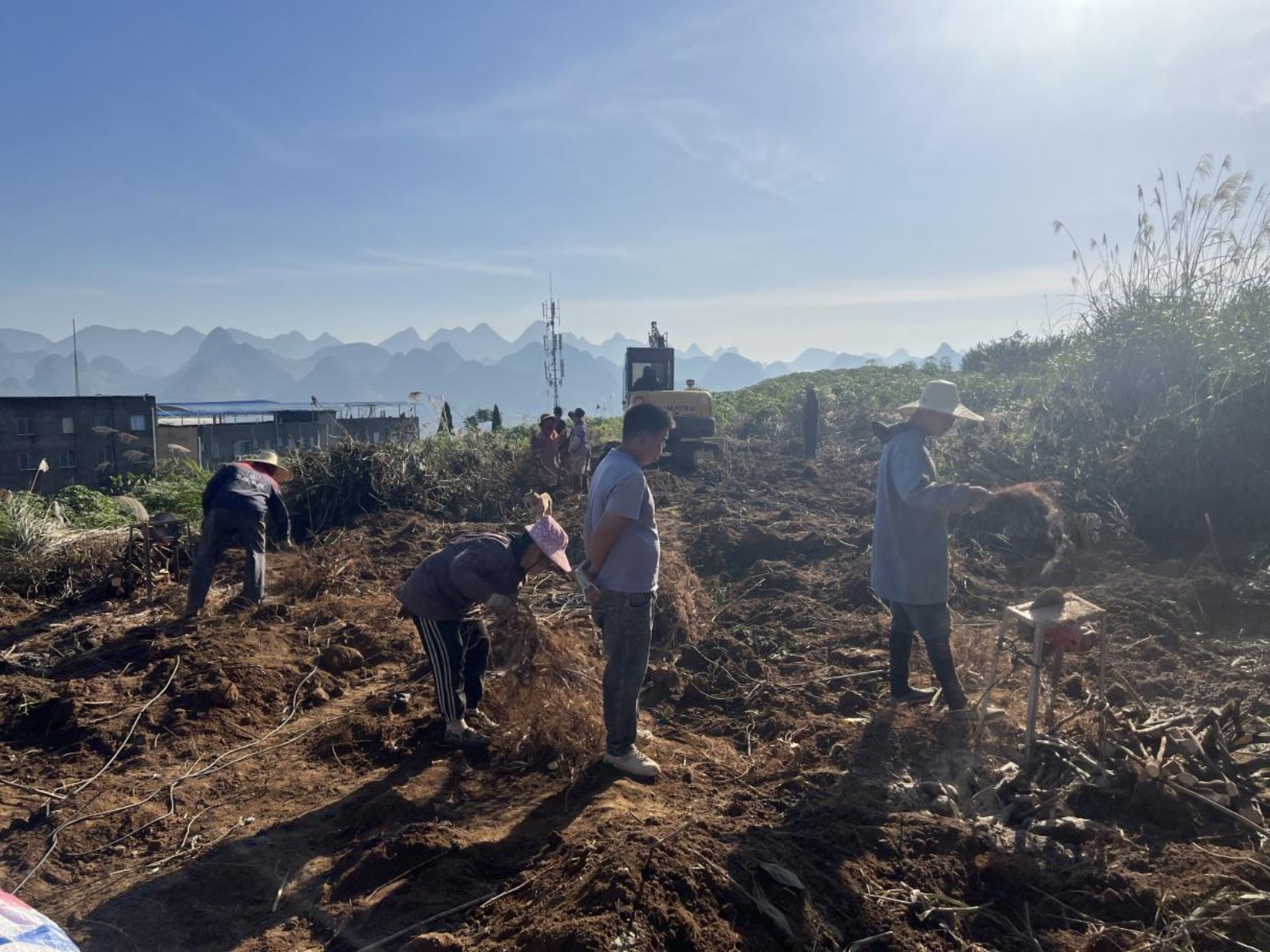 忻城县红渡镇马安村古梨屯种植户李红军种植的五指毛桃采收现场