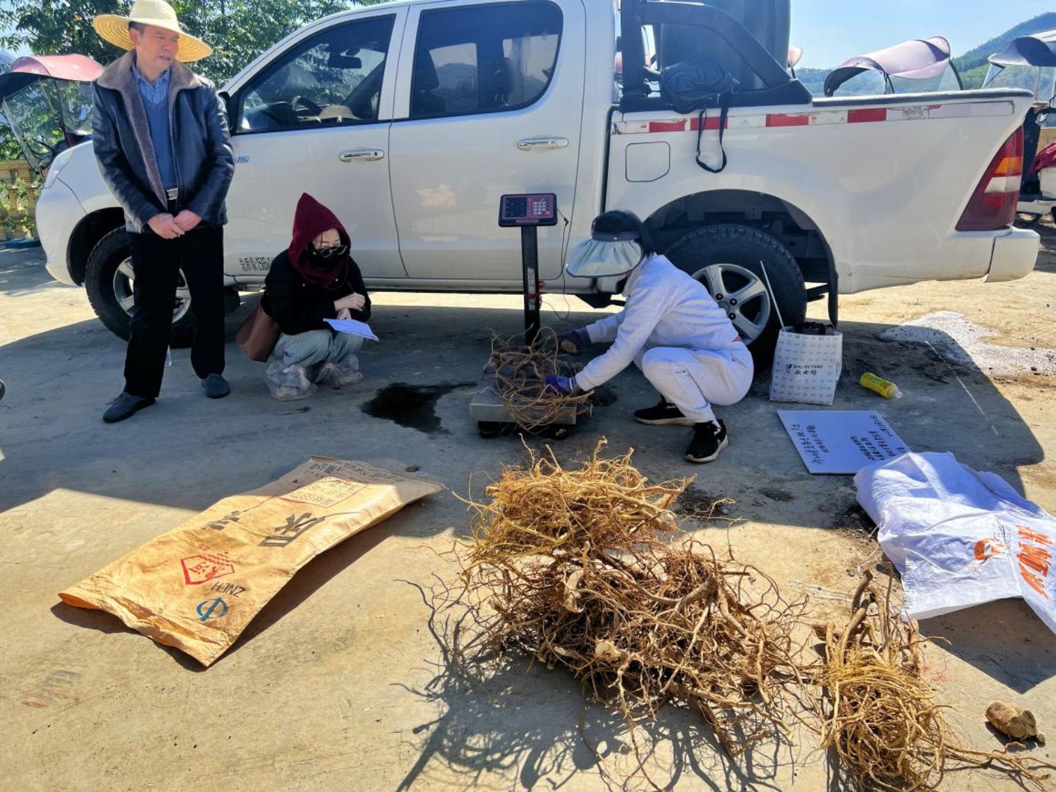 作为药食同源的特色植物,五指毛桃因叶片形似五指、果实酷似毛桃得名,根部散发牛奶香味,素有“南方黄芪”之称。马安村古梨屯岭地土质厚实,适宜五指毛桃生长,当地农户通过合作种植模式发展该产业,共种植45亩。采收期间,忻城县农业技术人员深入田间地头,开展专业测产工作,通过实地抽样、数据核算等规范流程,测算出每亩产量约2000斤。“今年收购商到地直收鲜货9元每公斤,每亩收入可达9000元左右。”合作种植户李红军介绍,尽管市场价格较前两年有所下降,但在技术保障下的丰收仍让农户们信心十足,后续将结合市场行情斟酌扩种计划。