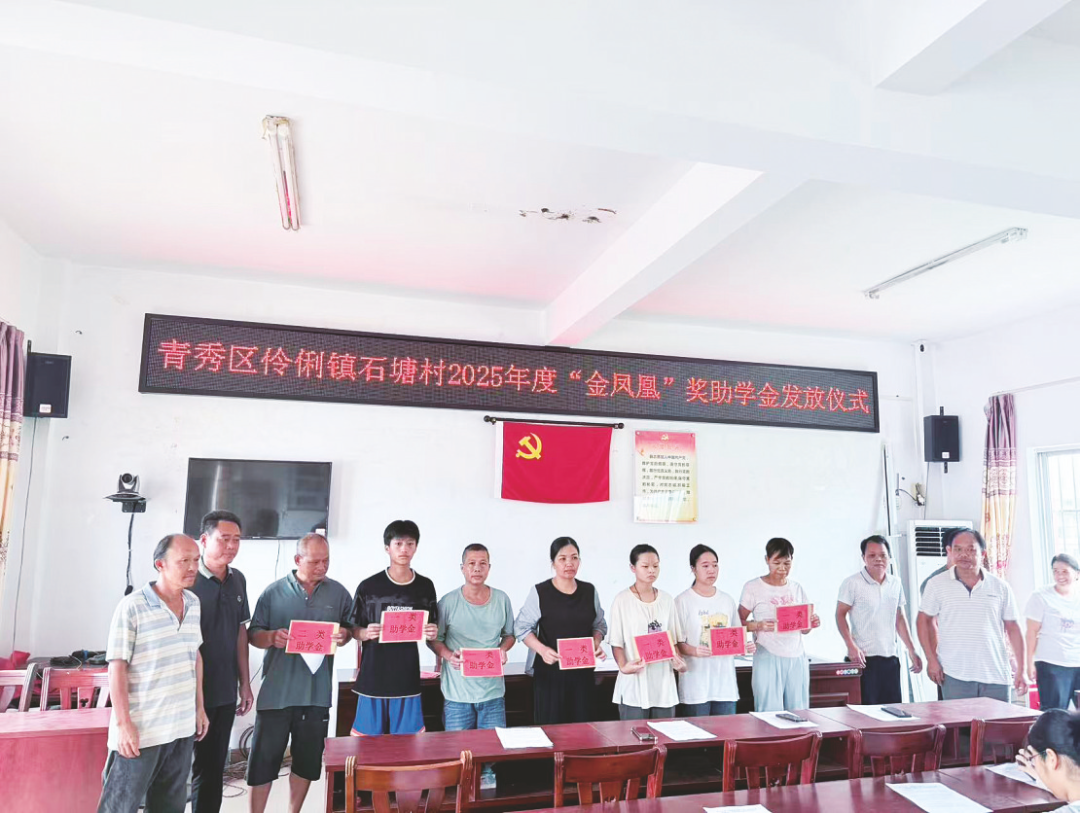 青秀区伶俐镇石塘村2025年度“金凤凰”奖助学金发放仪式。(伶俐镇供图)