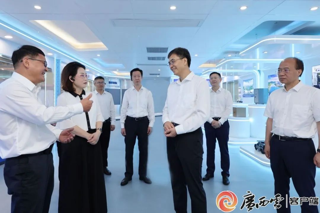陈刚首先来到防城港国际医学开放试验区医学创新赋能中心,认真听取试验区建设总体进展、数智园区运营中心规划建设等情况汇报。他强调,建设防城港国际医学开放试验区,是习近平总书记亲自宣布、亲自部署的重大决策,是构建人类卫生健康共同体、加强国际公共卫生合作的具体实践。要用好用足国家支持政策措施,发挥好国际医学创新合作论坛作用,积极加强与上合组织、东盟及“一带一路”共建国家合作,找准小切口招引一批医药龙头企业,大力发展现代医药产业,促进国际医学交流合作,大力打造国际医学创新合作新高地。