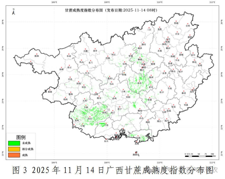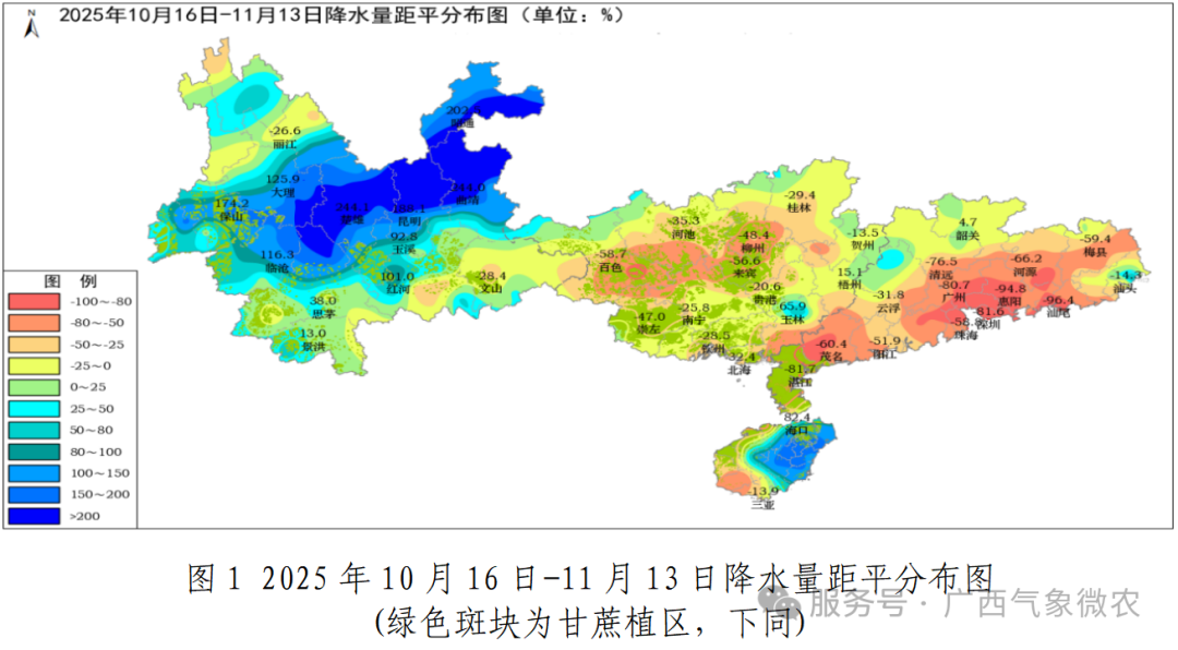 预计秋冬季大部地区降水量偏少,日照时数偏多,利于蔗糖分继续累积和甘蔗砍收入榨,但部分蔗区可能出现秋冬连旱、桂北蔗区出现低温冻害,可能影响甘蔗产量和蔗糖分,需科学制定蔗区砍收运输计划。