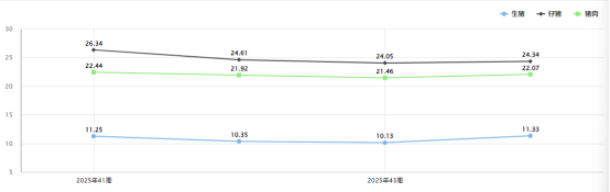 2025年10月第4周 (总第44周)20个监测县生猪市场价格分析