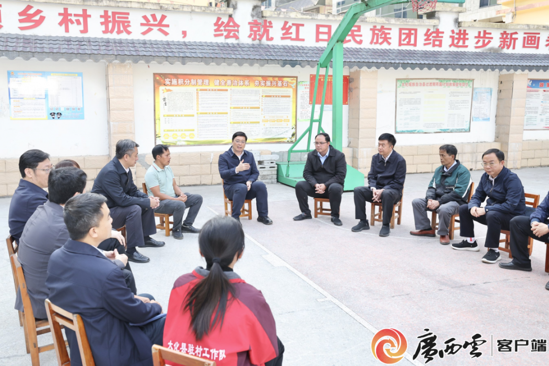 10月29日至30日,自治区主席韦韬深入河池市、百色市,宣讲党的二十届四中全会精神并调研。韦韬来到大化瑶族自治县雅龙乡红日村,与基层干部群众围坐一起,深入浅出宣讲党的二十届四中全会精神。广西云-广西日报记者 邓华 摄
