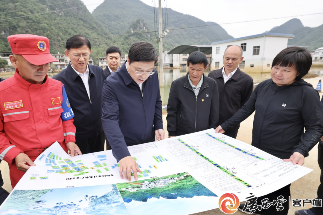韦韬来到德保县那甲镇多睦村多目屯内涝点,实地查看灾情处置和恢复重建情况,看望慰问一线救援人员和受灾群众。广西云-广西日报记者 邓华 摄