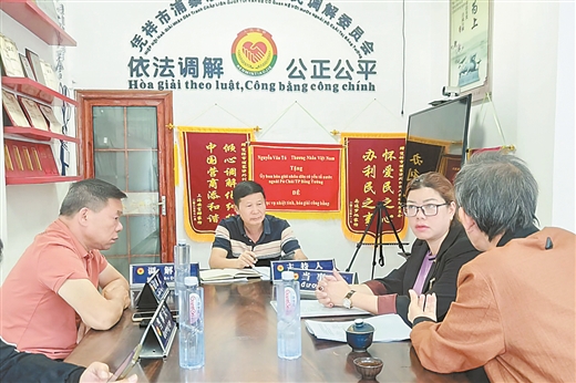 浦寨涉外纠纷人民调解委员会调解队伍由“周梅初+N个客商+外籍调解员”组成,建立中越双语网上受理服务网站,开通老周服务热线,全方位为客商提供便捷服务。