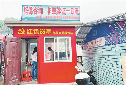 在浦寨商贸城的一个红色岗亭,上面标注的“党员志愿服务站”字样引起了记者的注意。
